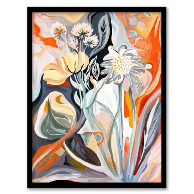 Artery8 Abstract Wildflowers Bright Floral Folk Art Living Room Artwork Framed Wall Print A4