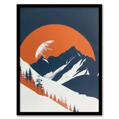 Artery8 Abstract Winter Crescent Moon Mountain Landscape Living Room Artwork Framed Wall Art Print A4