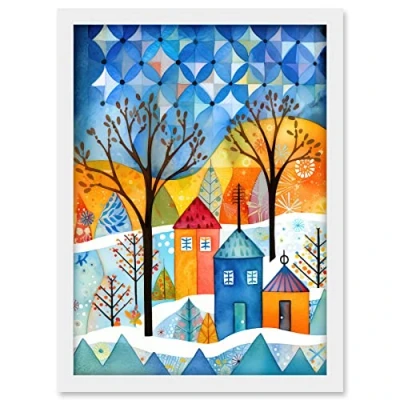 Artery8 Abstract Winter Snowfall Folk Art Artwork Framed A3 Wall Print