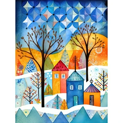 Artery8 Abstract Winter Snowfall Folk Art Large Wall Poster Print Thick Paper 18X24 Inch