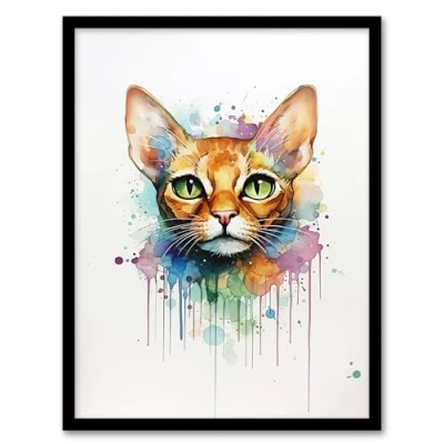 Artery8 Abyssinian Cat Lovers Gift Watercolour Pet Portrait Painting Artwork Framed Wall Art Print A4