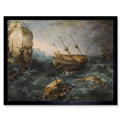 Artery8 Adam Willaerts Shipwreck Off Rocky Coast Painting Art Print Framed Poster Wall Decor 12x16 inch