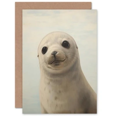 Artery8 Adorable Baby Seal Pup for Wife Her Mum Sister Daughter Mom Gran Nan Birthday Thank You Kids Child Blank Art Greeting Card