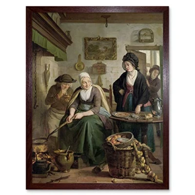 Artery8 Adriaan De Lelie Woman Baking Pancakes Painting Art Print Framed Poster Wall Decor 12x16 inch