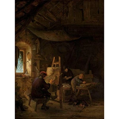 Artery8 Adriaen Van Ostade The Painters Studio Painting Premium Wall Art Canvas Print 18X24 Inch