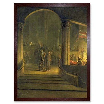 Artery8 Aert De Gelder Christ Before Caiphas Painting Art Print Framed Poster Wall Decor 12x16 inch