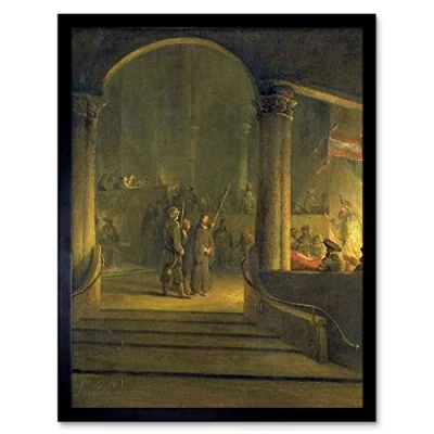 Artery8 Aert De Gelder Christ Before Caiphas Painting Art Print Framed Poster Wall Decor 12x16 inch