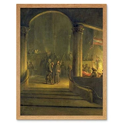 Artery8 Aert De Gelder Christ Before Caiphas Painting Art Print Framed Poster Wall Decor 12x16 inch