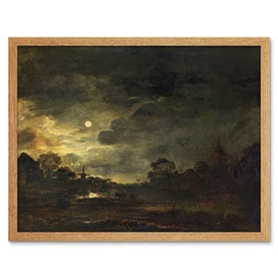Artery8 Aert Van Der Neer Landscape By Moonlight Painting Art Print Framed Poster Wall Decor 12x16 inch