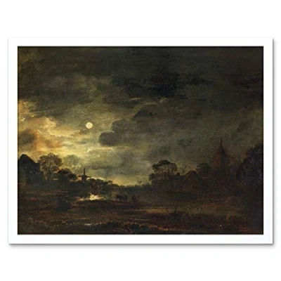 Artery8 Aert Van Der Neer Landscape By Moonlight Painting Art Print Framed Poster Wall Decor 12x16 inch