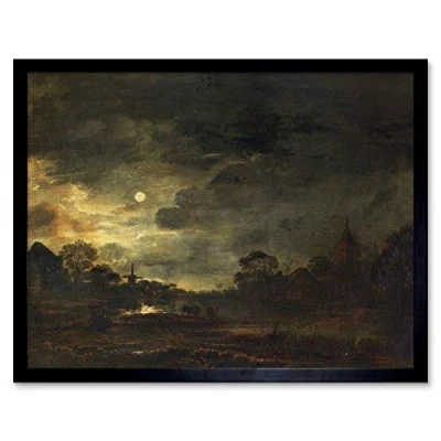 Artery8 Aert Van Der Neer Landscape By Moonlight Painting Art Print Framed Poster Wall Decor 12x16 inch