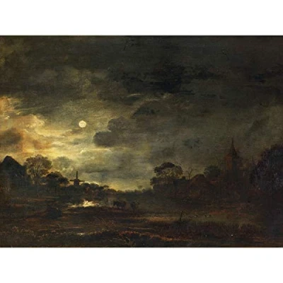 Artery8 Aert Van Der Neer Landscape By Moonlight Painting Premium Wall Art Canvas Print 18X24 Inch