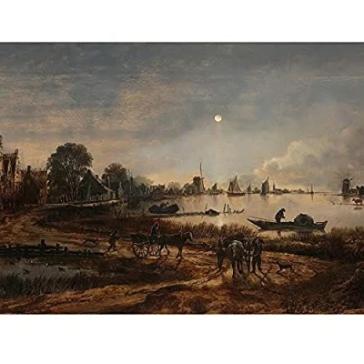 Artery8 Aert Van Der Neer Riverview By Moonlight Painting Art Print Canvas Premium Wall Decor Poster Mural