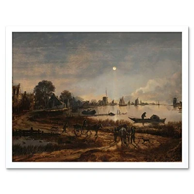 Artery8 Aert Van Der Neer Riverview By Moonlight Painting Art Print Framed Poster Wall Decor 12x16 inch