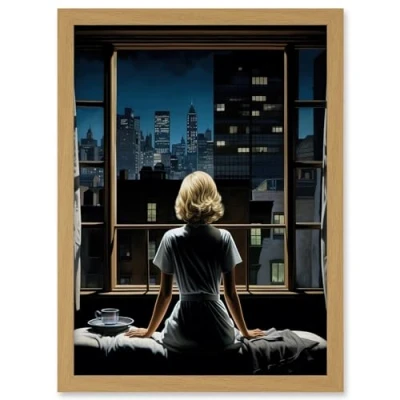 Artery8 Alfred Hitchcock Rear Window Inspired Hyperrealist Painting Watching Neighbours at Night Artwork Framed A3 Wall Art Print