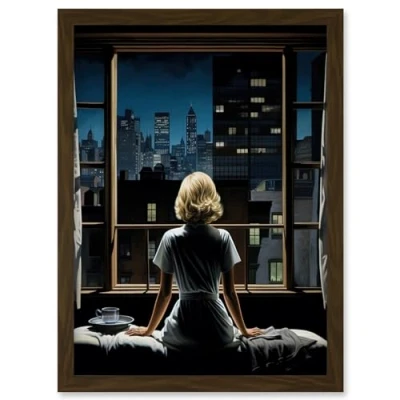 Artery8 Alfred Hitchcock Rear Window Inspired Hyperrealist Painting Watching Neighbours at Night Artwork Framed Wall Art Print A4