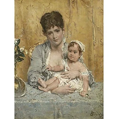 Artery8 Alfred Stevens Mother And Child Painting Art Print Canvas Premium Wall Decor Poster Mural