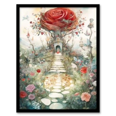 Artery8 Alice In Wonderland Painting Red Roses Queen Hearts Whimsical Magical Adventure Artwork Framed Wall Art Print A4