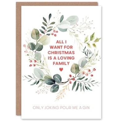 Artery8 All I Want Loving Family Only Joking Pour Me Gin Blank For Him Or Her Art Christmas Card