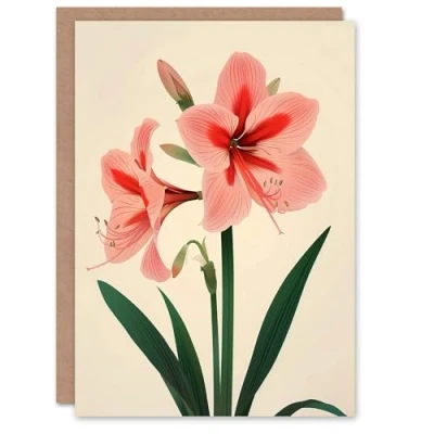 Artery8 Amaryllis Flower Bloom Stylised Botanical Design Greeting Birthday Card Him Her All Blank