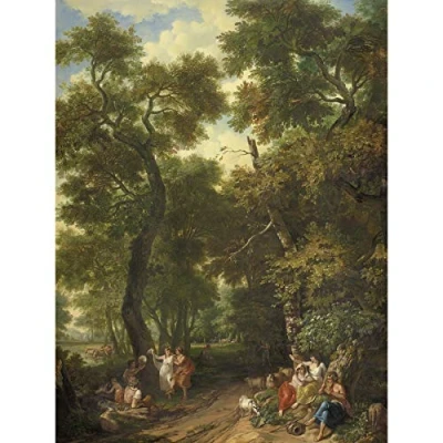 Artery8 Andriessen Arcadian Landscape With Musician Premium Wall Art Canvas Print 18X24 Inch