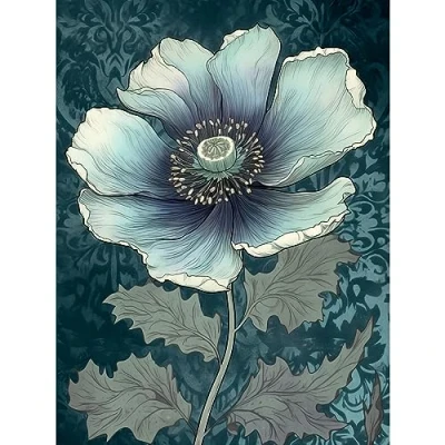 Artery8 Anemone Flower Bloom Teal Blue Watercolour Extra Large XL Wall Art Poster Print