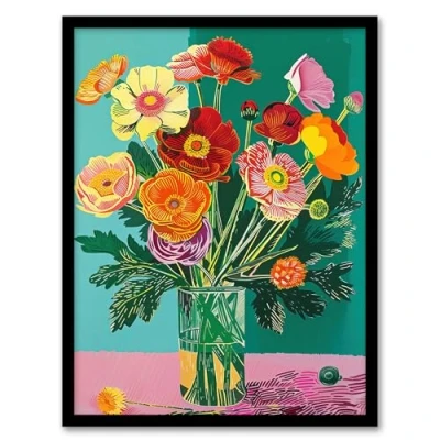 Artery8 Anemone Flower Bouquet Vibrant Stylised Painting Living Room Artwork Framed Wall Art Print A4