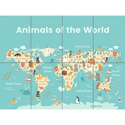 Artery8 Animals Of The World Map XL Giant Panel Poster (8 Sections)