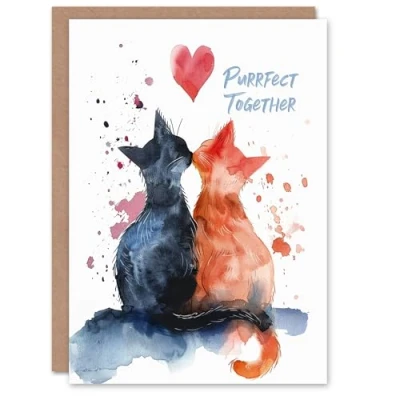 Artery8 Anniversary Card Cute Kitten Love Cat Lover Purrfect Together For Him or Her Partner Greeting