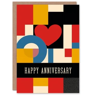 Artery8 Anniversary Card Love Heart Bold Geometric De Stijl Design For Her Gran Sister Niece Daughter Wife Woman Greeting