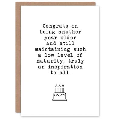 Artery8 Another Year Older Yet Low Maturity Level Funny Birthday Card