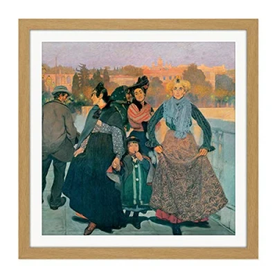Artery8 Anselmo Guinea Group Of People Vintage Painting Square Wooden Framed Wall Art Print Picture 16X16 Inch