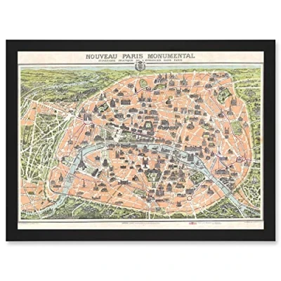 Artery8 Antique Garnier Paris Tourist City Map Plan A4 Artwork Framed Wall Art Print