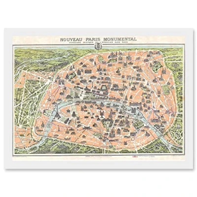 Artery8 Antique Garnier Paris Tourist City Map Plan A4 Artwork Framed Wall Art Print