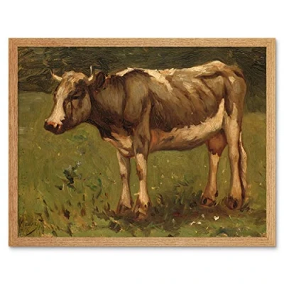 Artery8 Anton Mauve Cow Country Rural Farm Painting Art Print Framed Poster Wall Decor 12x16 inch