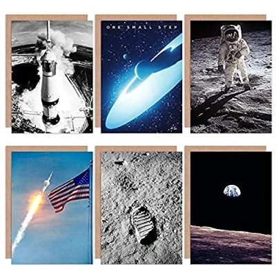 Artery8 Apollo 11 Astronaut Aldrin Armstrong NASA 50th Anniversary Moon Landing All Occasions Various Assorted Blank Greeting Cards With Envelopes Pack of 6