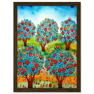 Artery8 Apple Orchard Trees Ready For Harvest Folk Art Landscape Watercolour Painting Artwork Framed A3 Wall Print