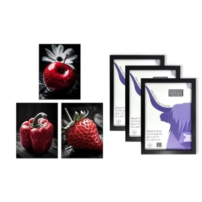 Framed Art Pack: This top-tier collection features 3 high quality, unframed wall art prints and 3 engineered wood frames. Each print is printed onto thick, luxurious art paper. Size: Each elegant piece is A4 sized and measures 29.7 x 21 cm (8.3 x 11.7 inches). Care & Quality: Please note that some assembly is required and that there may be some variation in the colour of the on-screen image and the actual item received. This is subject to the brightness and contrast of your screen settings. Versatility: These prints provide an aesthetic uplift to any space - be it living rooms, home offices, bedrooms, bathrooms, kitchens, and even B&Bs or traditional office environments. With our wide range of art styles from abstract to modern, classical, and more, there's something to cater to every art enthusiast's taste. Ideal Gift: Our art prints make a perfect, thoughtful gift for occasions like birthdays, Mothers Day, Christmas, Anniversary, or a housewarming present.