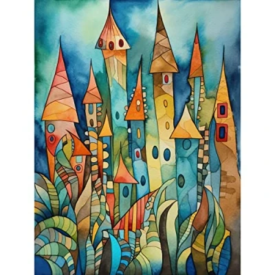 Artery8 Aquatic Castle Landscape Folk Art Watercolour Painting Extra Large XL Wall Poster Print