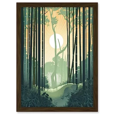 Artery8 Arashiyama Bamboo Grove Serene Forest Illustration Artwork Framed A3 Wall Art Print