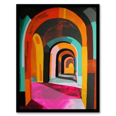 Artery8 Arch Corridor Vibrant Colourful Abstract Painting Living Room Artwork Framed Wall Art Print A4