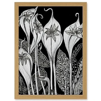 Artery8 Arisaema Flower Plant Black and White Folk Art Artwork Framed A3 Wall Print
