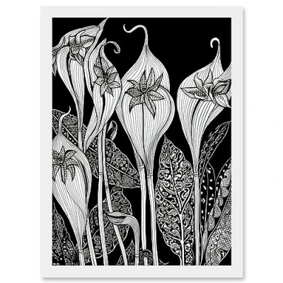 Artery8 Arisaema Flower Plant Black and White Folk Art Artwork Framed Wall Print A4
