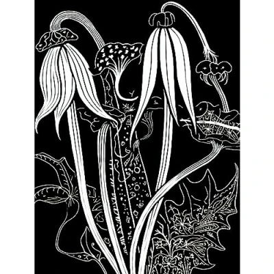 Artery8 Arisaema Flowers Black and White Contour Folk Art Extra Large XL Wall Poster Print