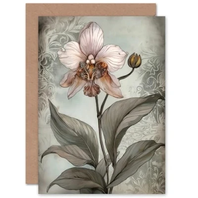 Artery8 Art Nouveau Pink Orchid Bloom Flower for Wife Her Mum Sister Daughter Mom Gran Nan Birthday Thank You Congratulations Blank Greeting Card