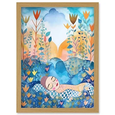 Artery8 Asleep In The Meadow Folk Art Artwork Framed Wall Print A4