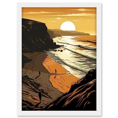 Artery8 Atmospheric Sunset at Beach Cove Coastal Landscape Artwork Framed A3 Wall Art Print