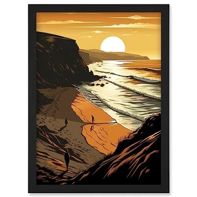 Artery8 Atmospheric Sunset at Beach Cove Coastal Landscape Artwork Framed Wall Art Print A4