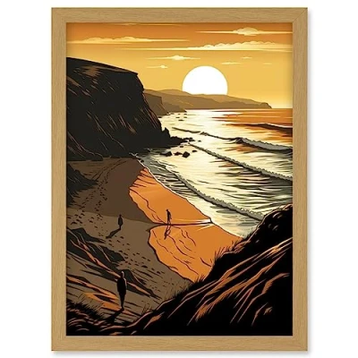Artery8 Atmospheric Sunset at Beach Cove Coastal Landscape Artwork Framed Wall Art Print A4