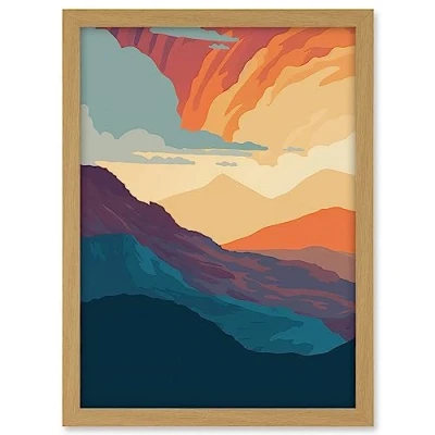 Artery8 Atmospheric Sunset Sky Serene Mountain Landscape Artwork Framed A3 Wall Art Print